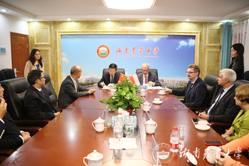 校长符少辉与波兰弗罗茨瓦夫环境与生命科学大学副校长Jaroslaw Bosy一行交流