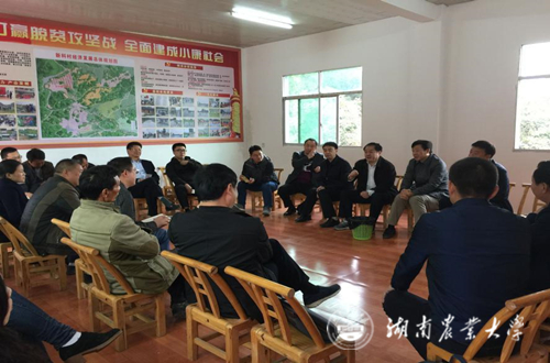 听取汇报后,国务院扶贫办党组成员夏更生高度肯定了湖南农业大学驻村工作两年以来在精准扶贫工作取得的成绩,特别是利用后盾单位湖南农业大学的科技优势,以发展产业带动贫困户脱贫致富成效显著,并意味深长地说:“习近平总书记在十九大的报告中反映出总书记最牵挂的还是贫困村群众。希望工作队按照习近平总书记在精准扶贫工作中的一系列讲话精神,把精准扶贫工作记在脑海里,把贫困户装在心里,抓好新科村的住房、医疗、教育、饮水等民生工程。新科村的产业发展前景非常好,希望工作队能充分发挥后盾单位湖南农业大学的科技优势,做好纽带作用,真正地把村产业做大、做强,让新科村的贫困户真脱贫、脱真贫,打赢脱贫攻坚战,让党放心,让百姓满意”。