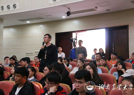 “农业是国民经济的基础,农民问题是中国革命的基本问题。”符少辉以毛泽东的话语为引,直切主题。他认为,自党的十八大以来,农业一直处于稳定发展阶段,但三农问题始终是我国农业的短板。中国乡村目前处于一种“缺人气、缺活力、缺生机”的三缺状态,且近年来农业被忽视,在产业中所占比重下降,发展不平衡、不充分。2018年中央一号文件发布了《关于实施乡村振兴战略的意见》,符少辉从实施乡村振兴战略的提出、意义、目标和重点任务四个方面进行了详细阐述。他提出,中华文化的根源就是农业文化。重视农业,发展乡村才是真正的固本之道,而实施乡村振兴战略,是解决人民日益增长的美好生活需要和不平衡不充分的发展之间的矛盾的必然要求。他强调,实施乡村振兴战略关键在于:构建振兴格局、推进产业兴旺、建设宜居乡村、繁荣乡村文化、健全治理体系、改善农村民生、创新融合机制。他简要介绍了湖南农业大学的“双百工程”“校地合作”、新农村发展研究院与湖南乡村振兴战略研究院等平台在实现乡村振兴战略的理论与实践研究、科研、社会服务和人才培养等方面所做的工作。他希望,无论是否农学专业的学生,都应掌握一些农业知识,树立正确的态度,把握好习近平总书记提出的“四好农村路”,将其牢记在心,对三农充满感情,做一名优秀的湖南农大人。在现场的互动环节中,同学们就“如何吸引外出务工人员回乡”等问题与符少辉进行了探讨。