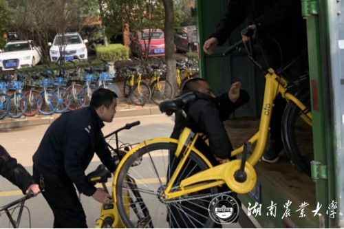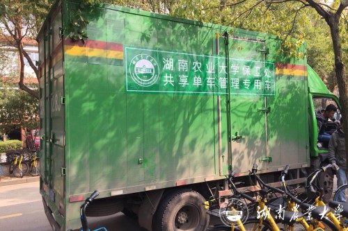 我校保卫处启动共享单车管理专用车整治共享单车停放秩序 方锋 摄