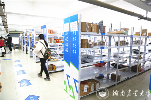 我校快递超市是后勤服务集团与阿里巴巴集团旗下“菜鸟驿站”的合作项目,于2017年9月建成投入使用,占地面积约450㎡,目前已整合顺丰、韵达、百世汇通、申通四家企业的快递业务,日均处理快件约3000个,单日最大派件量达1万个,在我校乃至全省各高校中,是运营规模、功能布局、管理模式等方面均走在前列的校园快递网点。师生们在收到取件短信后,只需到快递超市扫描二维码,两分钟内便可自助取走包裹。这种自助找件、取件的超市化运行模式,大幅提升了师生寄取件的效率,杜绝了快递网点分布零散、占道“摆摊”、师生取件不便等现象,实现了校园快递的智能化、规范化服务。