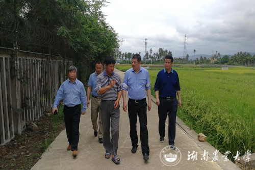 本网讯(科技处 曾桦)习近平总书记在4月12日考察三亚国家南繁科研育种基地时强调,要下决心把我国种业搞上去,抓紧培育具有自主知识产权的优良品种,从源头上保障国家粮食安全。湖南省科技厅积极响应习近平总书记指示精神,4月18日,厅党组书记童旭东、科研条件与基础研究处处长彭敬东等领导一行来到海南三亚,在湖南农业大学副校长曾福生的陪同下考察我校海南科研基地。