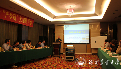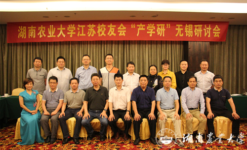 本网讯(江苏校友分会 何永鹏)5月26日,湖南农业大学江苏校友分会“产学研”交流会在无锡顺利召开。湖南农业大学校长助理周贤君,校友办主任胡茂丰、副主任张素芬一行四人应邀参加交流会。这次“产学研”交流会是江苏校友分会整合校友资源、实现融合发展工作的创新模式,通过依托江苏校友在学科、科研等技术优势资源,结合校友企业社会市场资源优势与需求,着力打造江苏校友分会校友产学研合作发展新载体、新平台。