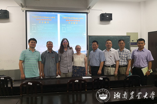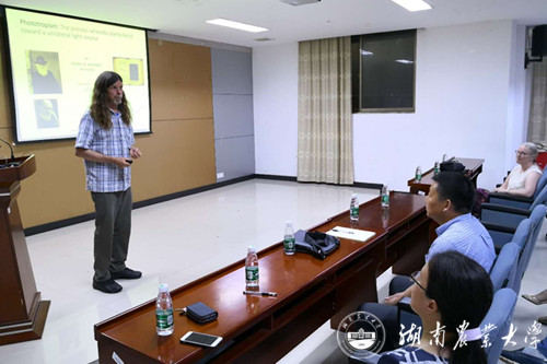 本网讯(国际交流与合作处 汪启明 饶力群)近期,在2017-2018年度湖南省教育厅“湖南省海外名师”和湖南省外专局“引智项目”的资助下,国际交流与合作处、湖南农业大学道地药用植物规范化栽培与综合利用湖南省工程实验室邀请了美国马里兰大学帕克分校Angus Murphy教授、Wendy Peer副教授来湘开展讲学和学术交流活动。