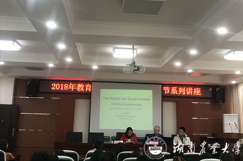 本网讯(教育学院 张乐琼 袁冬)10月24日下午,由挪威大学心理系Rolf Reber教授主讲的The Nature of Aha-experiences(顿悟体验的本质)学术讲座在十教北417开讲。讲座由教育学院院长郭丽君主持,教育学院心理学系老师与全体研究生参加了本次讲座。