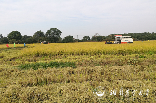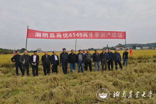 本网讯(农学院 郑华斌) 11月3日,湖南省作物学会组织国家水稻产业技术体系栽培与土肥研究室主任、中国水稻研究所章秀福研究员等7位知名专家组成专家组,在岳阳市湘阴县漕溪港村对头季机收再生稻“四防一增”栽培技术示范片的再生季现场进行了第三方严格测产与评议。