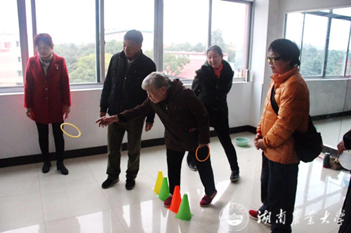 离退休处根据老同志的年龄和身体状况,立足实际、推陈出新、开发设计了青蛙跳水、神奇飞镖、幸运转盘、快乐保龄、趣味门球、姜太公钓鱼、掷绣球、顶气球、快速捡豆、幸运套圈、超级足球、击鼓传令、幸福来欢唱、穿针引线等十五个融趣味性、知识性、技巧性、安全性为一体的游艺项目。