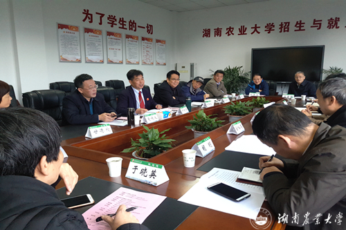 本网讯(新农村发展研究院 刘雯)3月13日上午,长沙市人大农业与农村委员会主任委员易田宏、副主任委员全裕高及芙蓉区人大常委会副主任严国益等一行六人,来我校专题调研推进长沙市“乡村振兴”工作。党委副书记卢向阳,副校长曾福生,新农村发展研究院专职副院长肖调义,园艺园林学院院长杨国顺及相关领域专家参加调研。曾福生主持调研会。