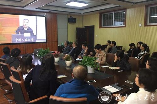 本网讯(马克思主义学院 邬丽 肖霖予)为进一步提升思政课教师队伍的马克思主义理论素养,打造一支“政治要强、情怀要深、思维要新、视野要广、自律要严、人格要正”的高素质专业化思政课教师队伍,马克思主义学院积极组织教师开展系列学习研讨活动。4月12日下午,“全国高校思想政治理论课教师‘周末理论大讲堂’”网络直播学习活动在十教北513室进行,学院全体教师参与学习。