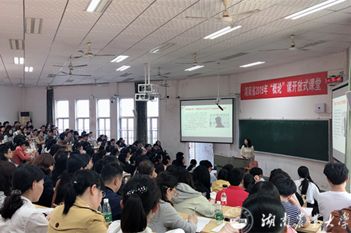 本网讯(马克思主义学院 朱希德 曹威伟)4月17日下午,湖南省思想政治理论课开放式课堂“概论”课第二次授课在湖南农业大学七教新T1如期开讲,来自全省106所高校的110多位思政课教师参加了课堂观摩与课程研讨活动。