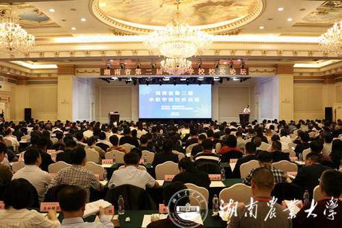 本网讯(教育学院 吴磊 记者 王薇薇)5月6至7日,为期两天的湖南省第二届中职学校校长论坛在长沙举行,论坛由湖南省教育厅举办,湖南农业大学承办。各市州教育(体)局分管中职教育的局领导及职成教科(处)负责人;全省公办中职学校校长、民办中职学校举办者;市州职教科研机构主要负责人;省职成教协会中职教学管理工作委员会及各专业委员会的秘书长400余人齐聚一堂共谋湖南职教发展。