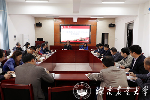 本网讯(学工部 胡喜海)5月8日上午,2019届普通全日制本专科毕业生工作协调会在12教222会议室举行。学校党委书记陈弘,副校长张立、校党委委员、宣传部部长刘启定出席会议,学校相关职能部门负责人,各学院分管学生工作副书记参加会议。会议由副校长张立主持。