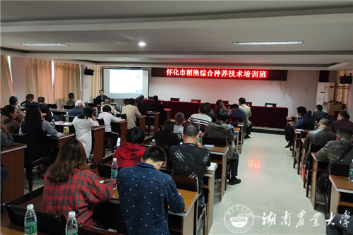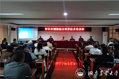 13日下午,辰溪县畜牧水产局举办稻渔综合种养技术培训班,100余名种养大户及专业技术人员参加培训。培训会由辰溪县畜牧水产局局长翟晓明主持,怀化市畜牧水产局副局长蔡教明、怀化市水产站站长余长生、辰溪县副县长王利宝同志出席开班仪式并作重要讲话。培训会上,黄璜回顾了自己近几年在怀化辰溪县开展的社会服务,针对辰溪县现代农业发展的实际需求,重点就稻田生态种养模式的选择、农业生产风险防范、农产品市场前景等内容进行了讲解。陈灿副教授作了题为稻—虾稻田生态种养新技术的报告,详细介绍了稻田生态种养的水稻品种选用、稻—小龙虾种养技术。