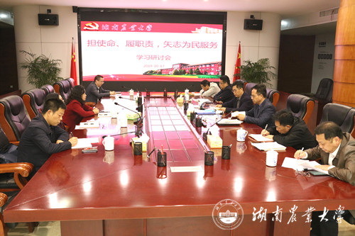 随后,与会人员从学习收获、实际工作出发,围绕“担使命,履职责,矢志为民服务”这一主题依次发言。大家纷纷表示,担使命,就是要牢记我们党肩负的实现中华民族伟大复兴的历史使命,勇于担当负责,积极主动作为,保持斗争精神,敢于直面风险挑战。作为高校教育工作者,要全面贯彻党的教育方针,落实立德树人的根本任务,培养知农爱农新型人才,扛起强农兴农时代重任。在工作中,坚持以问题为导向,认真查摆,深刻检视,以强烈的政治责任感和历史使命感,把担使命、履职责的着力点放在学校发展上,瞄准师生普遍关心的突出问题,推进落实学校十大民生工程,以学促改,立行立改,让大家看到主题教育实实在在的成效,不断增强全校师生的获得感和幸福感。