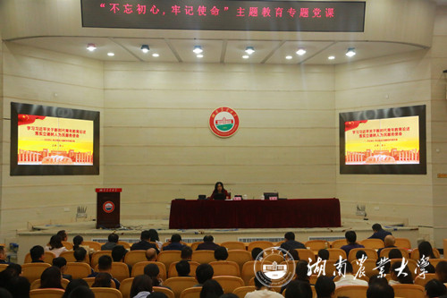 本网讯(学工部 李涛)10月18日上午,学校党委委员、副校长张立在学校图书馆大成厅以“学习习近平关于新时代青年教育重要论述,落实立德树人为民服务使命”为题,为食品科学技术学院、教育学院、体育学院等分管联系单位党员、全体辅导员和学生党员代表讲授“不忘初心、牢记使命”主题教育专题党课。党委学生工作部(学生工作处)、人民武装部部长翁波主持。