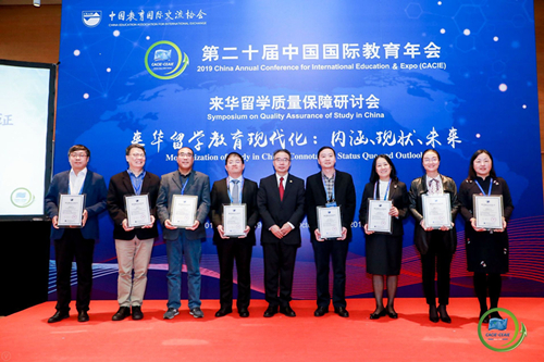 本网讯(国际交流与合作处 陈志力)10月18日,受教育部国际合作与交流司委托,由中国教育国际交流协会举办的2019年来华留学质量认证工作结果发布及授证仪式在北京国家会议中心举行。我校顺利通过认证,成为2019年度22所通过认证的高校之一。段美娟副校长代表学校出席仪式并领取来华留学质量认证证书。