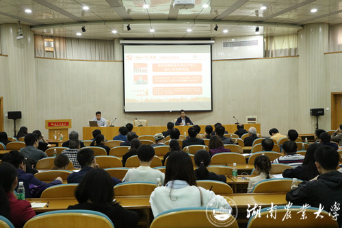 本网讯(宣传部 庹炼)10月23日,校党委副书记卢向阳在生科楼国际会议厅上《守初心、担使命,全面提升学校核心竞争力》专题党课。党委组织部、党委宣传部、党委统战部、离退休工作处、工会,生物科学技术学院、化学与材料科学学院全体党员参加。校党委委员,党委宣传部、党委统战部部长刘启定主持。