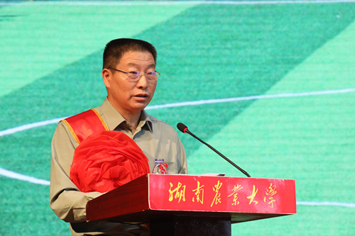 卢向阳宣读了《中共湖南农业大学委员会关于嘉奖欧阳长安同志的决定》。校党委书记陈弘为欧阳长安同志颁发荣誉证书。