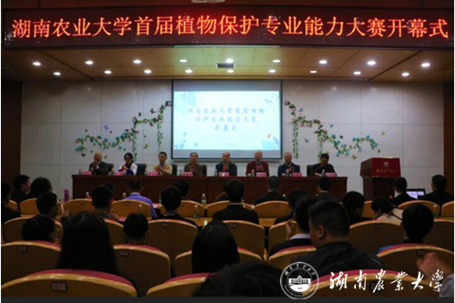 大赛开幕式在第八教学楼学海厅进行。副校长段美娟,湖南人文科技学院农业与生物技术学院副院长金晨钟、中南林业科技大学黄建华教授、湖南科技大学生命科学学院副院长孙远东,学校教务处副处长洪彬,植物保护学院院长李有志,植物保护学院副院长易图永等领导、专家出席,会议由植物保护学院党委书记张爱龙主持。