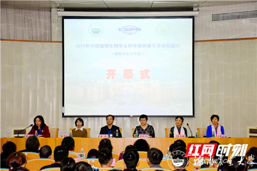 本网讯(植物激素实验室 蔺万煌 王若仲 夏石头)11月16-17日,由中国植物生理与分子生物学学会植物生物学女科学家分会主办,湖南农业大学和湖南省植物生理与分子生物学学会承办的“2019全国植物生物学女科学家科普与学术校园行”活动在湖南农业大学生命科学楼国际会议厅举行。我校校友美国科学院院士、美国加州大学河滨分校陈雪梅教授,中国科学院院士、中科院遗传研究所曹晓风教授,中国植物生理与分子生物学学会植物生物学女科学家分会会长夏光敏教授,中国植物学会副理事长顾红雅教授等14位女科学家出席活动。学校党委书记陈弘,党委副书记卢向阳出席开幕式,开幕式由副校长张立主持。研究生院、校团委、生科院等单位负责人以及300多位师生参加了本次活动。