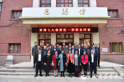 79级兽医一班校友在校史馆前合影