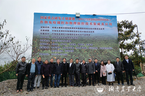 本网讯(植保院 刘甜甜)11月24日至25日,国家重点研发计划“作物免疫调控与物理防控技术及产品研发”的课题8“柑橘主要病虫害免疫与物理防控综合技术集成及应用”示范实施效果现场评议会在洪江市召开。华中农业大学、湖南省植物保护研究所、湖南省植保植检站、洪江市农业农村局等有关专家应邀出席,科学技术处处长陈光辉、植物保护学院党委书记张爱龙、湖南省柑橘植保岗位科学家戴良英教授、洪江市副市长蒋辉以及示范区的相关人员参加会议。