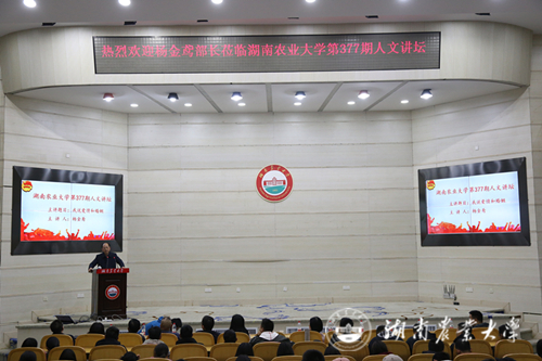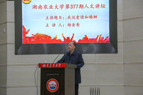 本网讯(校团委 罗宗贵)11月28日晚,学校邀请省委“不忘初心、牢记使命”主题教育巡回指导组第十四组组长杨金鸢作客第377期人文讲坛,主讲“我说爱情与婚姻”。校党委委员、副校长张立,校党委委员、组织部部长兰勇等近千余名师生参加讲座。