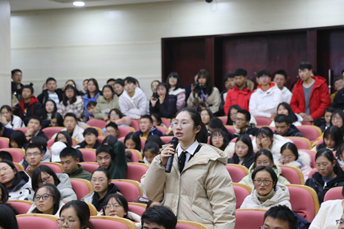 针对同学们关心的“恋爱和婚姻当中,隔三差五的吵架该怎么处理?”“大学期间怎样处理学业与爱情的关系”等问题,杨金鸢与同学们进行了热烈的探讨。“大学生作为年满18岁的成年人,要学会选择,学会爱,有时候也要学会放手,放手也是一种爱。”他强调,“学生主要任务是学习、成长和发展,要树立正确的爱情观,正确处理好学习和恋爱的问题,要在最美好的青春里选择奋斗。” 交流中的指导,不仅说到了学生的心坎里,而且触及和走进了学生心灵深处,给同学们指引了方向。