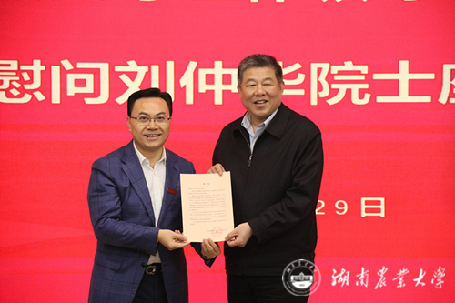 省科技厅厅长童旭东向刘仲华院士转交贺信