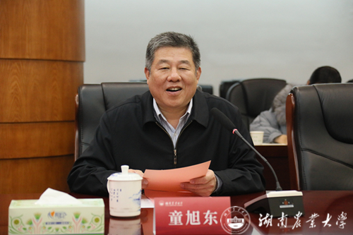 童旭东宣读了省委书记杜家毫的贺信,向湖南农业大学和刘仲华院士表示热烈祝贺。他表示,湖南农业大学办学历史悠久、文化底蕴深厚,培养了一大批优秀的专家人才,为湖南经济社会发展做出了重要贡献。省委人才工作领导小组各成员单位将加强院士专家联系服务工作,促进高校科研成果转化,服务湖南省经济发展。