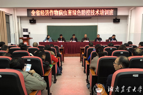本网讯(植保院 林佳欣荣 牟白洋)11月26日—28日,由湖南省植保植检站主办,我校植物保护学院承办的全省经济作物病虫害绿色防控技术培训班在16教529多媒体教室举行。来自主省14个市州、98个县(市区)植保植检站(局)的学员参加了培训。湖南省植保植检站全体站领导出席开班典礼。