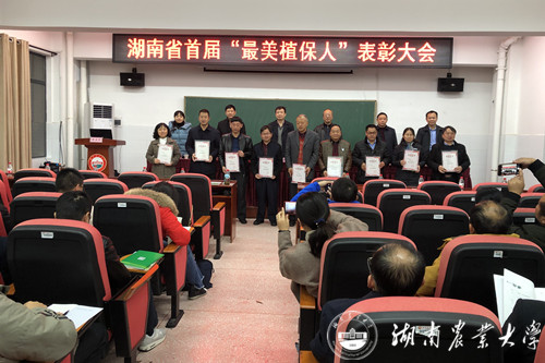11月27日,在全省经济作物病虫害绿色防控技术培训班举办之际,还召开了首届“最美植保人”表彰大会。梁建文、冯春水、杨佑安、刘中求、胡胜辉(女)、廖用信、贺德全、潘峰、杨兴霞(女)、罗诗龙等10人被授予湖南省首届“最美植保人”荣誉称号。