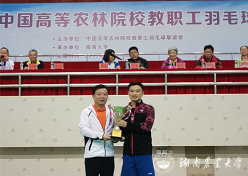 本网讯(校教职工羽毛球队)12月1日-4日,由中国高等农林院校教职工羽毛球联谊会主办,海南大学承办的第九届全国高等农林院校教职工羽毛球联谊赛在海南大学联谊馆举行。副校长段美娟率我校教职工羽毛球代表队参加比赛。