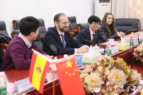 国际交流与合作处处长岳好平向来宾详细介绍了我校的整体情况,回顾了两校的交往历史和合作交流现状。奥斯卡•费尔南德斯表示,莱昂大学高度重视与我校的合作,已派出第一批学生来我校留学,期待两校进一步加大学生交流力度,进一步将合作领域扩展到教师交流和科研合作方面,特别是动物学方面的合作。中方院长刘飞兵就两校如何更紧密和高效地加强联系提出了建议。