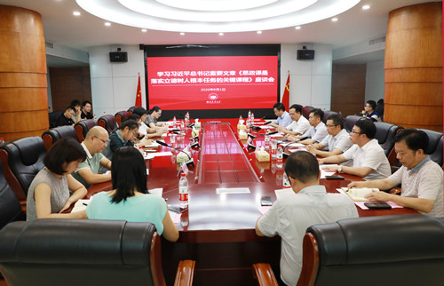 本网讯(宣传部 庹炼)9月1日下午,学校举行深入学习习近平总书记《思政课是落实立德树人根本任务的关键课程》重要文章座谈会。党委书记陈弘、党委副书记卢向阳出席,会议由党委委员、党委宣传部、党委统战部部长刘启定主持。党委宣传部、学工部、教师工作部、研工部、教务处、团委主要负责人,马克思主义学院全体班子成员、教师代表参加座谈。