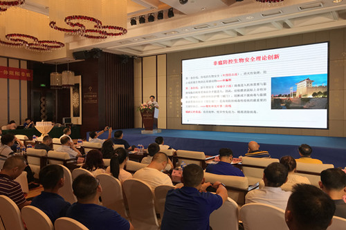 会议由国家生猪产业技术创新战略联盟副理事长、湖南畜禽安全生产协同创新中心常务副主任贺喜教授主持,项目首席专家文利新代表团队(董伟副教授、谢小红等)介绍了在非洲猪瘟防控生物安全关键技术创新取得的原创成果。团队创新和发展了生物安全理论,提出新生物安全观和贴膜原理,文利新将新生物安全观形象地比喻为古代的城池攻防守卫战,即绝大多数病毒侵入机体需要与黏膜细胞的病毒受体结合才能进入,而非瘟病毒只感染猪,且主要通过咽喉部和消化道粘膜入侵,说明非瘟病毒有开启猪机体的“钥匙”,因此,给黏膜表面贴上非特异性(护城河)或特异性防护膜(城门),阻断或干拢病毒与黏膜表面受体的结合(守住城门)是高效防控病毒性疫病最有效手段。p72和P54蛋白是非洲猪瘟病毒(ASFV)的主要结构蛋白和强免疫原性蛋白,参与病毒对靶细胞的吸附与进入,文利新团队以上述理论为指导,将免疫原性蛋白P72和P54的基因克隆,制成重组乳酸菌,然后利用重组乳酸菌精准表达P72和P54蛋白,制成黏膜感染阻断剂,通过口服,与咽喉和消化道黏膜表面的受体特异性结合,封闭非瘟病毒受体的结合位点,形成生态占位,从而有效阻断病毒入侵。课题组在长沙市科技创新创业领军人才专项的支持下,开展了中试田间试验,在全国近百个猪场数万头母猪和20多万头育肥猪开展稳产、复产以及精准清除、迅速扑灭疫情方面取得较好效果,受到养殖户普遍欢迎。