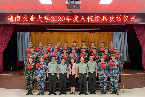 本网讯(人民武装部 谭煌辉)9月9日上午,2020年度入伍新兵欢送仪式在芙蓉区新兵役前训练基地举行。预计今年我校有96名大学生应征入伍。副校长张立,学工部、人武部负责老师参加了此次欢送会。