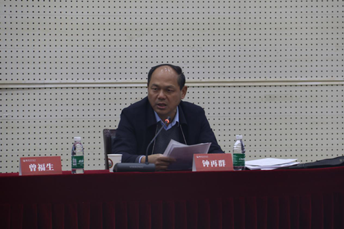 曾福生对钟再群来校作专题报告表示衷心感谢和热烈欢迎。他希望水利与土木工程学院要立足湖南水问题,瞄准科研前沿和社会热点,实现教学与科研“两手抓”,把学院做大做强做出特色。
