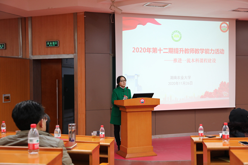本网讯(教务处 黄佳宁)11月26日下午,学校在十教北502教室举办本年度第12期提升教师教学能力- -“推进一流本科课程建设”的活动,参加活动的有获一流本科专业“双万计划”专业建设点负责人、省级一流本科课程“双万计划”课程团队、骨干教师、教务处相关人员,以及湖南师范大学3位专家,共计120余人参加研讨,活动由教务处副处长洪彬主持。
