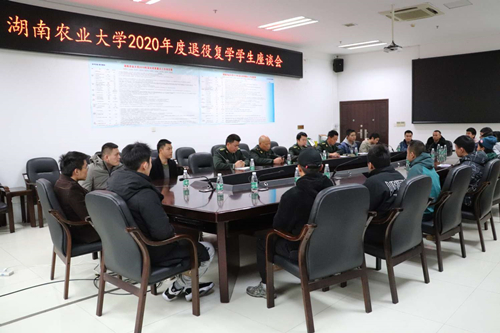 夏棣稀表示,学校高度重视退役复学学生的学习、生活情况,希望退役复学学生继承和发扬军人的优良传统,严格要求自已,退伍不褪色,奋斗有作为;希望大家发挥传、帮、带的作用,把军人的优秀品质传导给身边的同学;希望大家迅速融入大学生活,知农爱农,为学校发展建设贡献力量,在人生的另一个舞台上再立新功。
