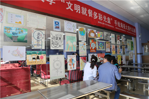 在丰泽食堂三楼餐厅,食堂与校团委联合举办了“文明就餐、多彩光盘”手绘海报大赛。各院系同学踊跃参与,纷纷用手中的画笔或电脑,勾画出自己心中对“勤俭节约”传统美德的理解,诠释了“节约光荣,浪费可耻”的观念和生活方式。目前,食堂已将征集的200多幅优秀作品张贴于餐厅的文化展示区,吸引了很多就餐师生驻足观赏。