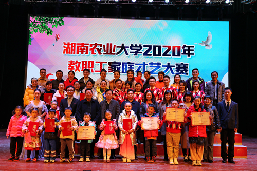 本网讯(校工会 张晶)11月30日晚,我校“争创和谐之家,共建美好农大——2020年教职工家庭才艺大赛”在大礼堂举行。校党委副书记卢向阳、副校长张立、校团委副书记李姣、人文与外语学院副书记唐琳、体育学院教师易冠男担任大赛评委,校工会负责人、各部门工会主席、教师代表、参赛家庭亲友团700余人现场观看比赛。