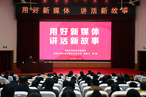 本网讯(宣传部 王薇薇)12月4日下午,学校党委理论学习中心组集中学习(扩大)会在修业讲堂召开,湖南红网新媒体集团党委书记、董事长舒斌作“用好新媒体,讲活新故事”主题报告。全体校领导、党委委员,全体处级干部及辅导员参加,党委书记陈弘主持会议。