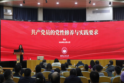 本网讯(学工部 杨曙)12月11日下午,副校长张立以“共产党员的党性修养与实践要求”为题,为分管部门、联系学院党员讲授专题党课。