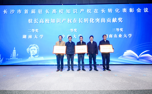 本网讯(科技处 刘雯)12月22日上午,由长沙市政府人民政府主办,长沙市知识产权局承办的首届驻长高校知识产权在长转化表彰会议在岳麓山大学科技城举行。副校长曾福生带队参加表彰大会。