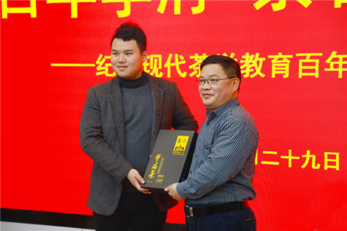 “茶学从手工锄头到自动化到人工智能,要不断创新。”“茶学在精神层面还要升华。”“茶学教育理论与实践还要结合得更紧密。“……老一代茶学教育专家殷殷嘱托。以楚茗茶业新一代传承人王铭涵为代表的青年茶学学子抱负远大:”我们要撕掉‘喝茶老干部’的标签,为饮茶画上‘新时尚’的符号,让茶文化‘年轻化’和‘时尚化’。”座谈会上,楚茗茶业向湖南农业大学校友办捐赠100套“学府纪念茶”。据悉,“学府纪念茶”是白沙溪院士工作站的研究成果与非遗传统技艺相结合,是湖南农业大学产学研实践的成果。