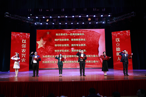与会领导分别为获奖集体和个人颁发了荣誉证书。优秀学生代表进行了湘农学子表白演说,展示了湘农学子砥志研思、躬身实干、矢志奋斗的精神。优秀辅导员代表通过深情朗诵传递了辅导员心语,并带领全场辅导员庄严宣誓,铿锵有力的誓词凝聚着每一位辅导员为党育人为国育才的坚定决心。