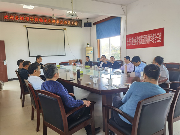 在江背镇龙头井现代农庄,大家对基地的农旅产业、生态种植等进行了考察和技术指导。与长沙县从事水果种植的企业代表召开了产业对接和技术需求座谈会,就葡萄栽培和品质管理技术、茶叶栽培管理与优质绿色生产技术、杨梅采购与保鲜技术,柑橘防冻与病虫害预防、市场营销、产业规划等情况作具体指导和交流,并发放果树栽培技术资料。