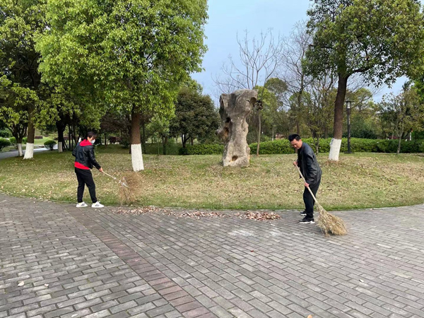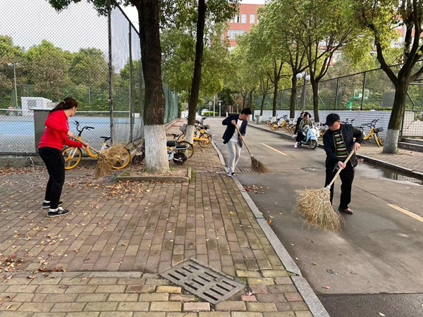 早上6点30,支部党员干部分成六个小组,每3人一组,分别前往中心广场、芙蓉广场、老校门、体育馆等区域,开始了清扫工作。有的清扫路边垃圾与落叶,有的捡拾绿化带内纸屑,有的将树叶装袋并运上车,分工合作,干得热火朝天。经过两个多小时的辛勤劳动,校园中心区域的卫生被打扫得干干净净,路面焕然一新。