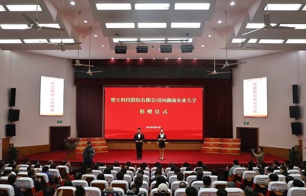唐岳董事长的本次捐赠,是学校迄今为止接收的最大一笔捐赠。金钱总有限度,物质可以计价并终将枯竭,唯有精神价值无法估量,而且可以倍增为无限力量和无穷财富。我们感谢唐岳校友,不仅仅是这一次1000万巨额捐赠,还有之前他为机电学院设立30万汽车工程赛专项奖学金。更要感谢的是,他对母校始终满怀感恩,多年来一直关心支持母校发展,关心帮助学弟学妹成长成才。他和他所带领的楚天科技团队,胸怀远大理想、励志产业报国、坚忍不拔追求、脚踏实地奋斗,正成为激励学弟学妹们奋斗成才的榜样,成为学校立德树人的生动教材。